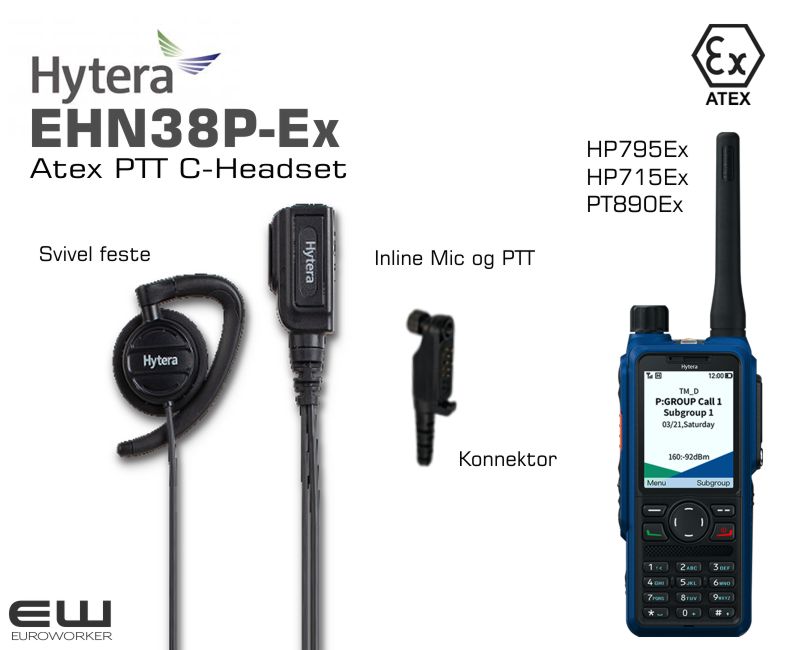 - Atex godkjent headset godkjent for bruk til Hytera: