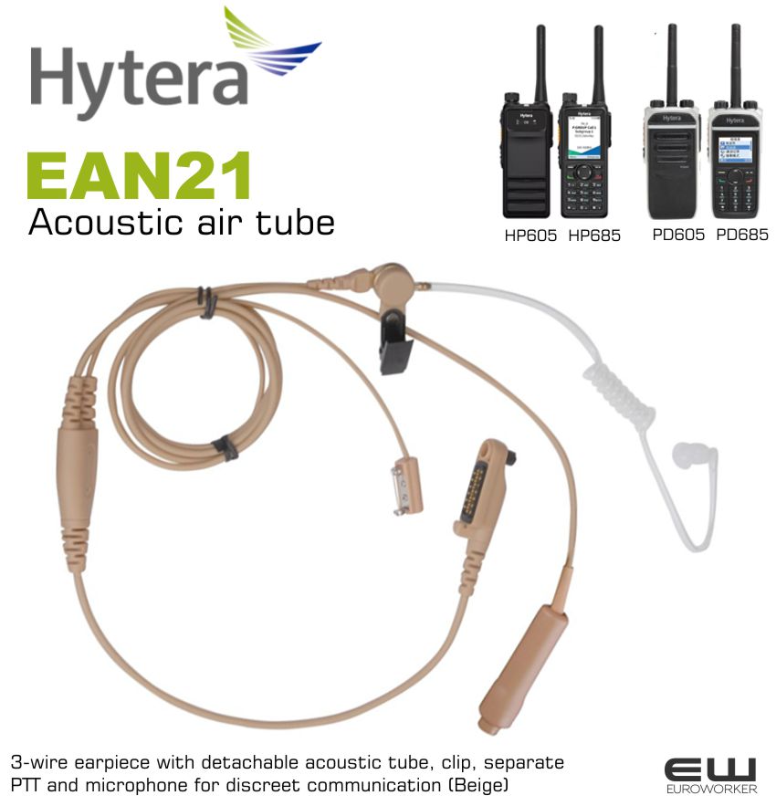 - Hytera EAN21 3-Wire Acoustic tube PTT Headset (Beige, PD6. HP6)