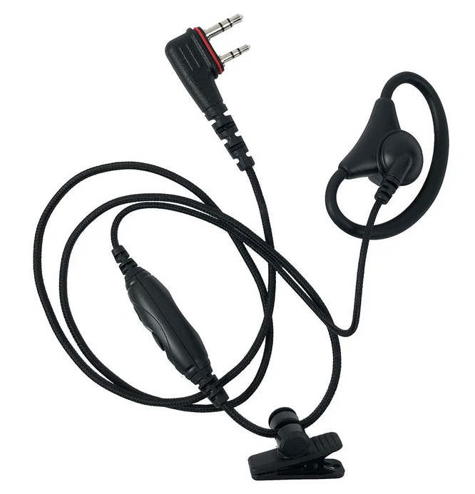 - Svart headset med D-shell ørestykke, in-line PTT/mic med svarte Fabric Line stoffkabler, som er slitesterke og ikke floker seg like lett som plastekvivalenter. Justerbar klips for å feste snoren i for eksempel kragen.