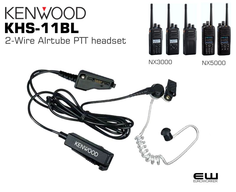 - Kenwood KHS-11BL 2-Wire AIrtube PTT headset