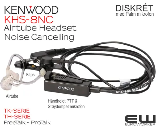 Kenwood KHS-8NC Diskrét Airtube Headset med Håndholdt PTT & Støydempet Mikrofon (NX-, TK- & TH-serie)