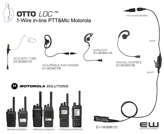 Otto Loc 1-Wire in-line PTT&Mic Motorola DP & MTP (E1-1W2MR131)
