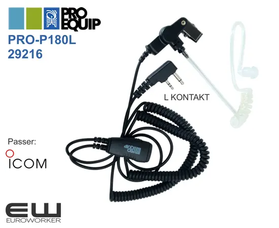 - Vinklet Icom L 2-pinskontakt utan skrer for direktetilkobling mot Icom radio med 2-pinskontakt på toppen avradioen
