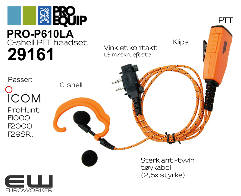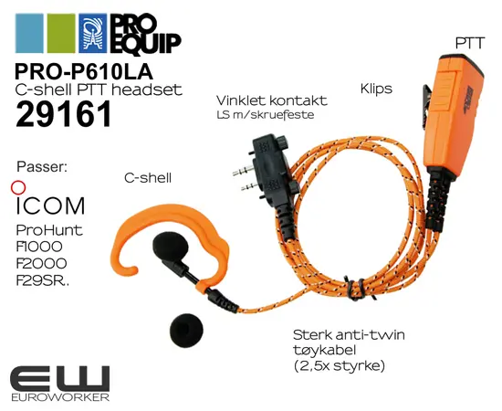 Proequip PRO-P610LA C-shell headset med PTT (F2000, F1000, F-29SR, ProHunt..)
