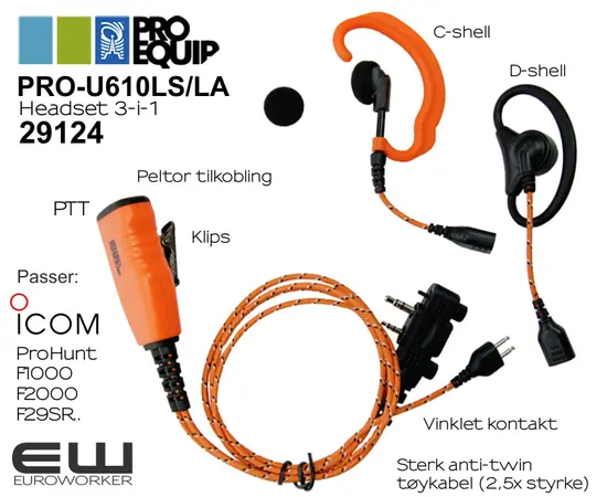 Proequip PRO-U610LS/LA Headset (Icom F2000, F1000, F-29SR2, ProHunt..)