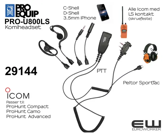 Proequip PRO-U800LS Komiheadset for Icom, iPhone, SportTac mfl (LS-kontakt)(29144)