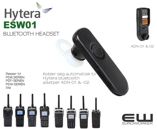 - Bluetooth headset for bruk sammen med Hytera bluetooth adapter ADN-01 pg ADN-02
