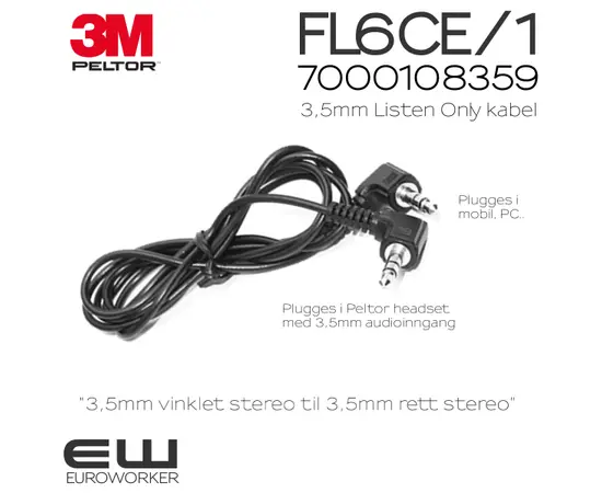 3M Peltor FL6CE/1 - Listen Only kabel (3.5mm - 3.5mm)