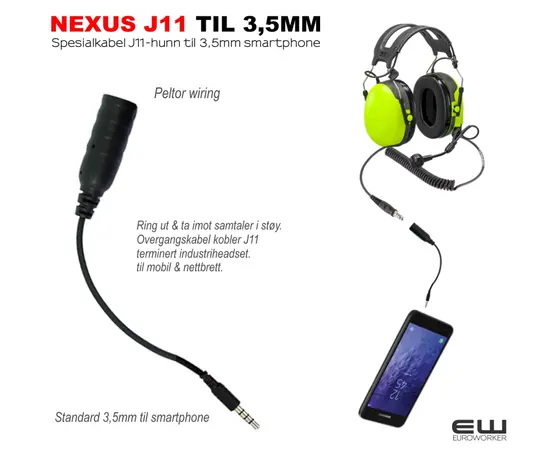 - Koble ditt Peltor headset med J11 Nexus kontakt til mobilen!
