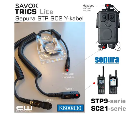 Savoxc Trics Lite Y cable for 2 x Sepura STP/SC21 K600830