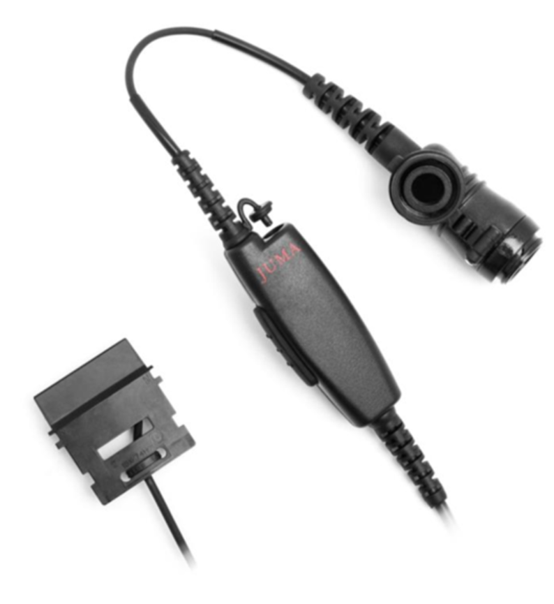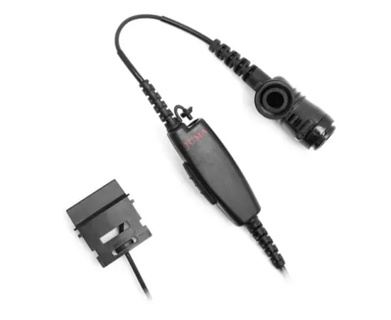 Cable with in line PTT that will allow the connection of a Peltor headset to a DM4000/e series mobile. Also allows connection of a footswitch via a 2.5mm socket. Connects to rear radio accessory connector. The 4-pole Nexus socket allows connection of headsets fitted with a Nexus connector. Suitable for headsets with an Electret powered microhone. 360 degree, 8-position rotating belt clip. 2.5mm socket for remote PTT option.