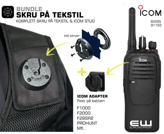 Klick Fast Bundle Skru på Tekstil Icom Adapter (F2000, F29SR2, PROHUNT)