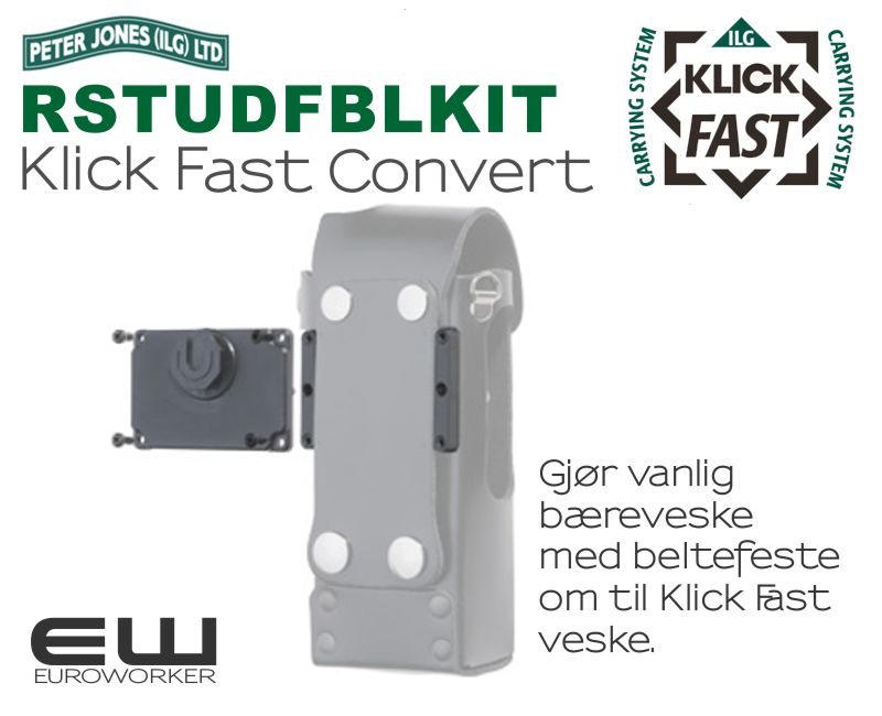 - Solid løsning som tilpasser vanlige vesker med beltefeste til Klick Fast Systemet.