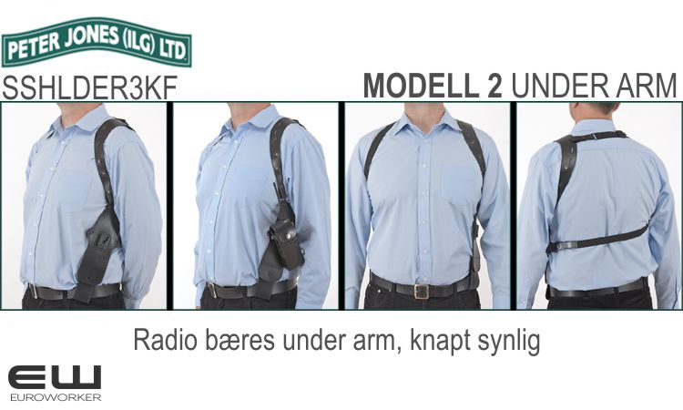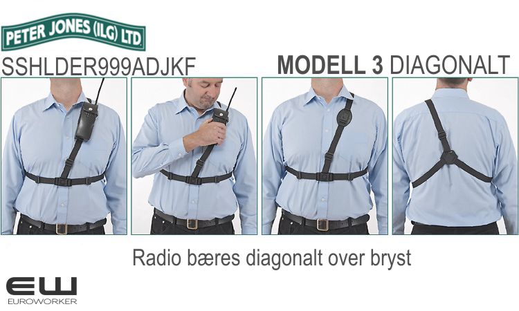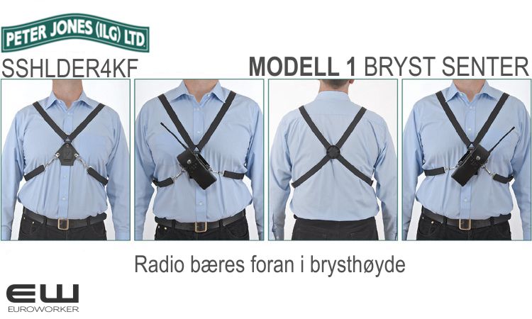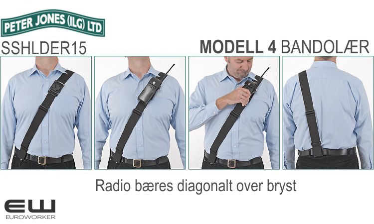 - Modell 4: Bandolær, radio festet på bred diagonal sele.