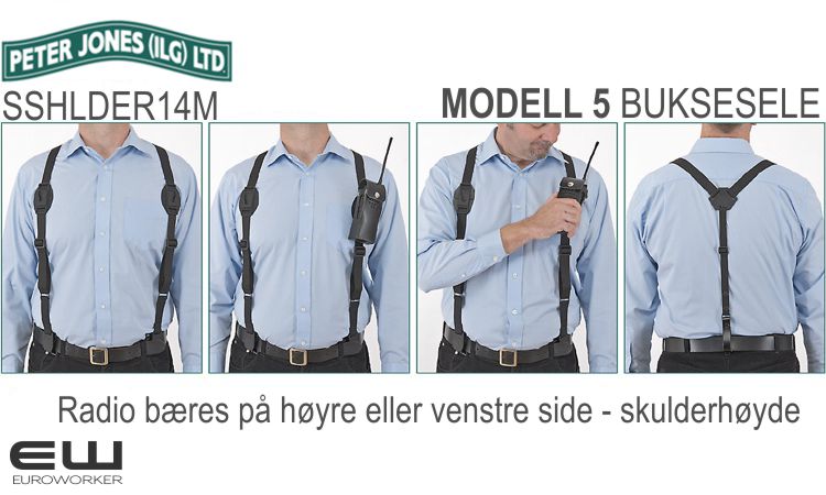 - Modell 5: Bukseselefeste, radio kan bæres på høyre eller venstre side (Small, Medium, Large)