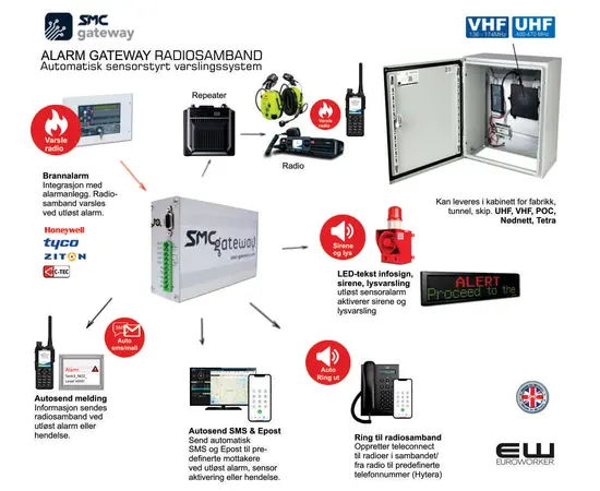 - SMC Gateway kan koble en rekke alarmer til radiosystemet: