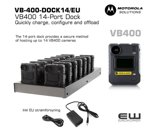 VB400 14-Port Camera Charging Dock with PSU and EU cable