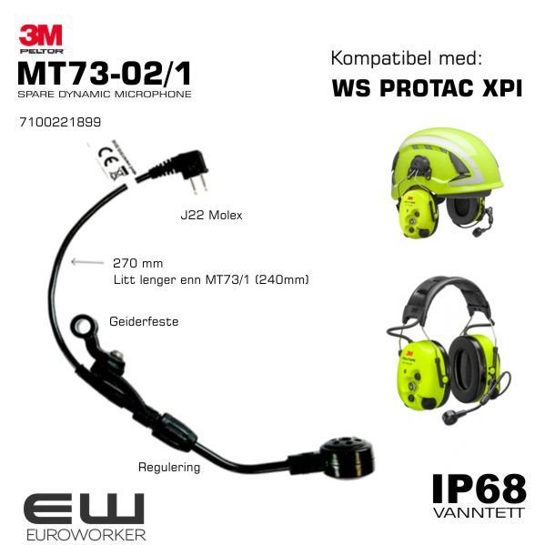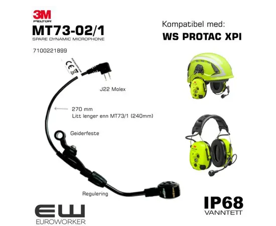 3M Peltor MT73-02/1 - Vanntett Dynamisk Mikrofon til Protac (IP68)