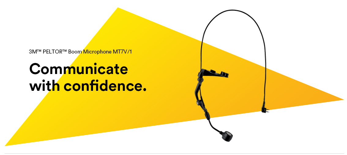 The 3M™ PELTOR™ Boom Microphone MT7V/1 enables clear communication when using a 3M™ Versaflo™ M-300 Series Respirator Hard Hat. The MT7V/1 Boom Microphone is compatible with most MT7 series 3M™ PELTOR™ Protective Communication Headsets. This noise-cancelling speech microphone enables clear communication in noisy environments.