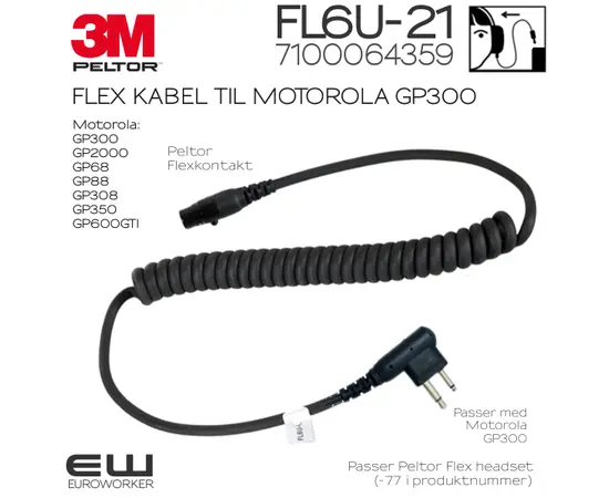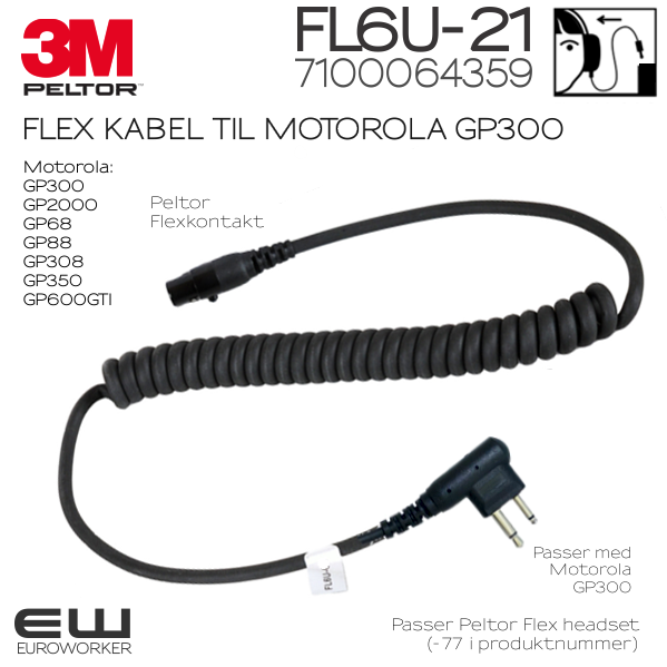 3M Peltor Flexkabel FL6U-21 til Motorola GP300