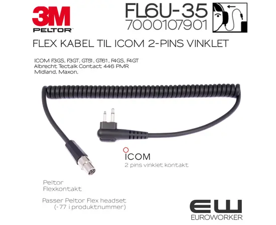 3M Peltor Flexkabel FL6U-35 til Icom (vinklet)