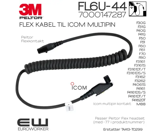 3M Peltor Flexkabel FL6U-44 til Icom Multipin