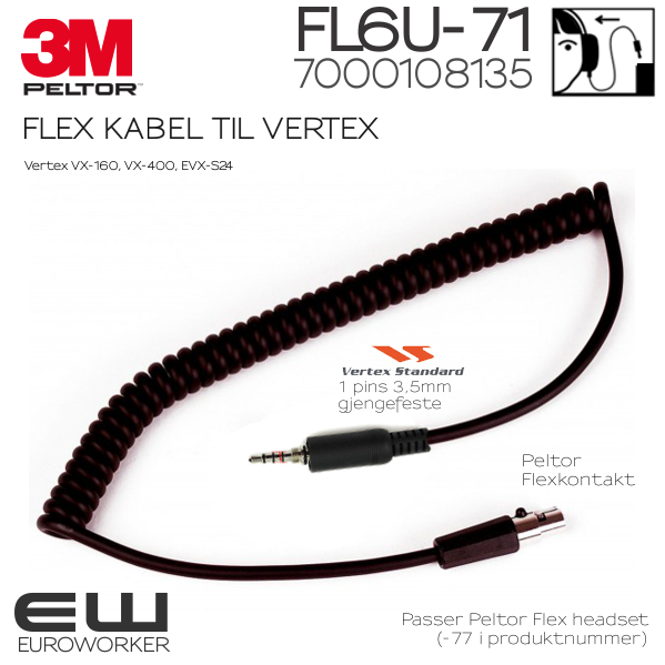 3M Peltor Flexkabel til Vertex FL6U-71 (1 pins) 7000108135