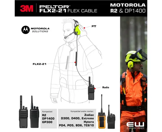 3M Peltor FLX2-21 (Motorola R2, DP1400, Hytera BD615, Zodiac D300, D400)