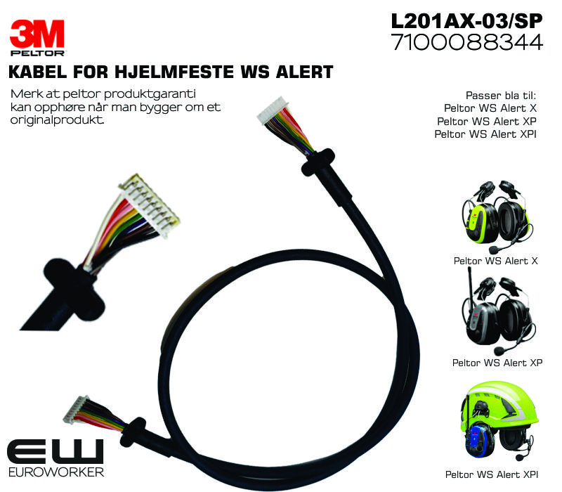 3M Peltor L201AX-03/SP - Separat kabel hjelmfeste WS Alert X, XP og XPI
